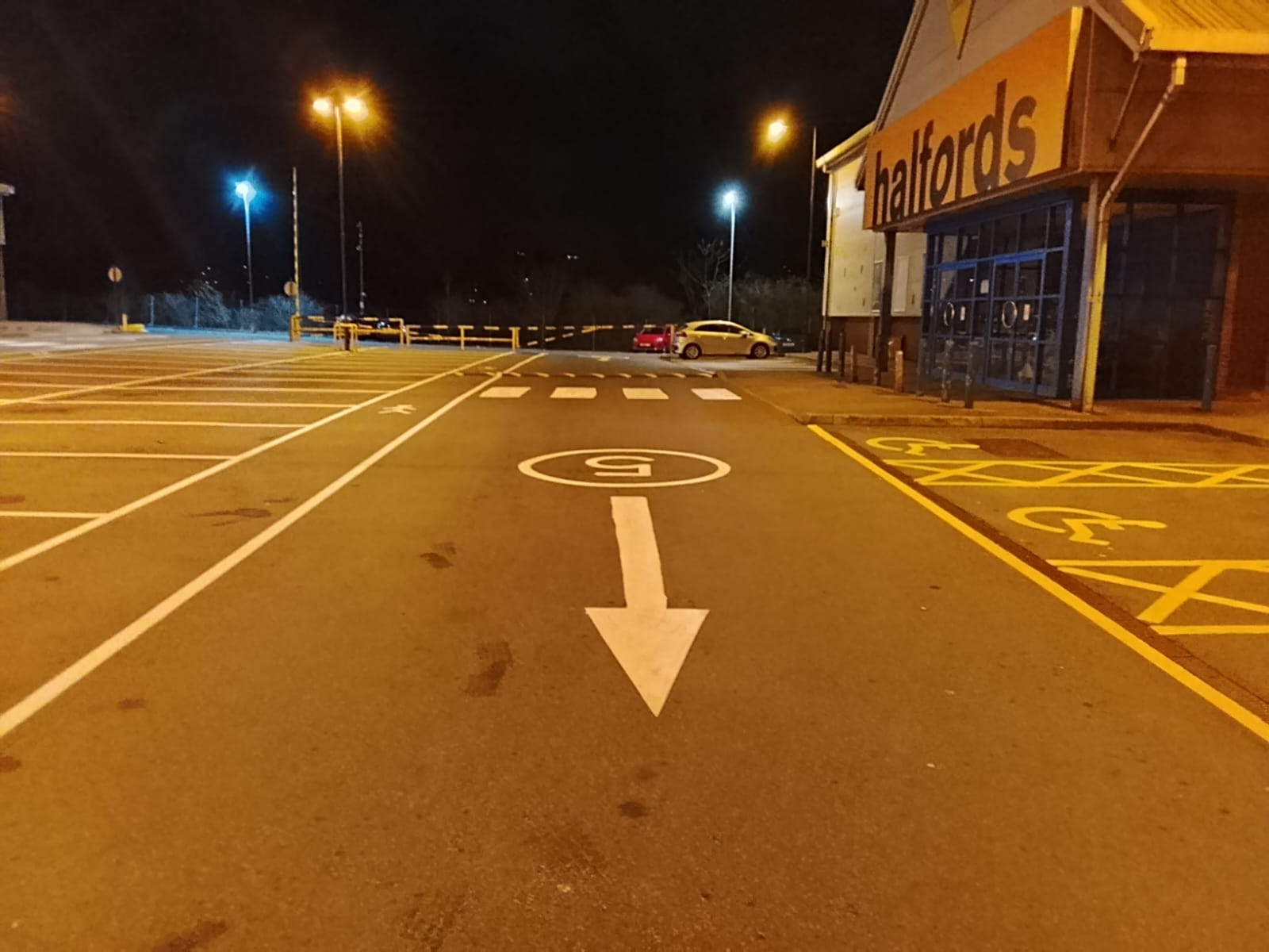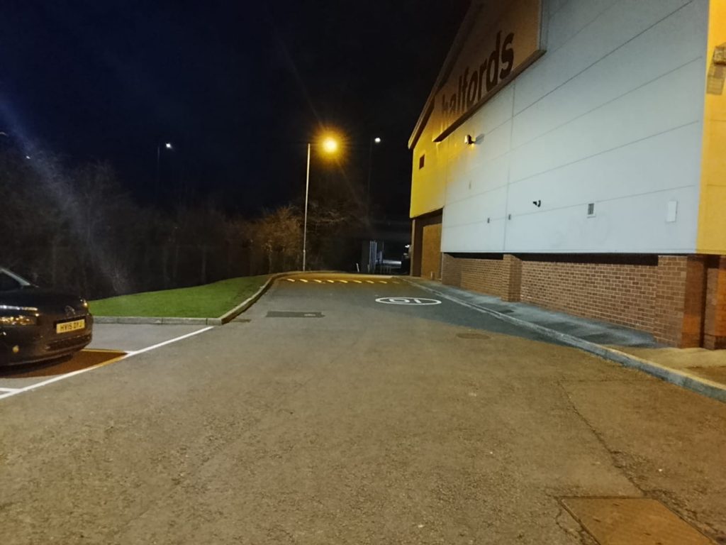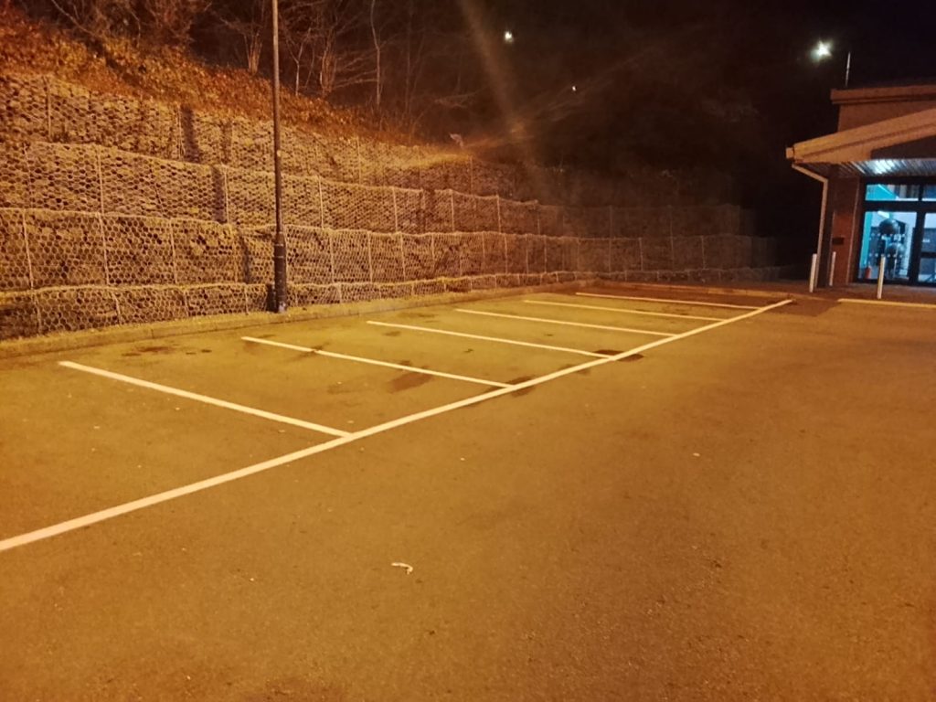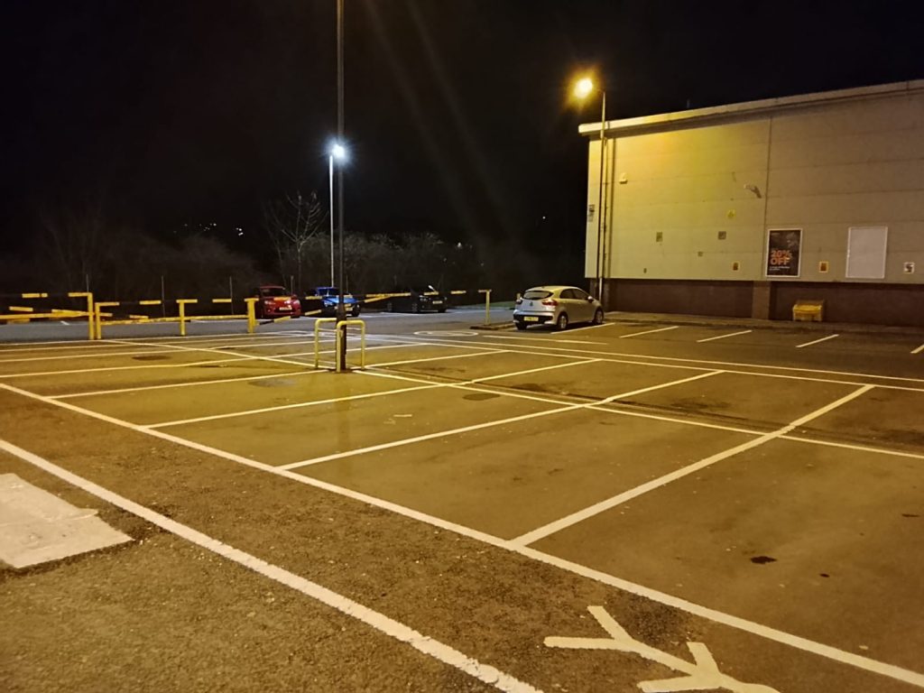 Finding a dry window for line marking in the UK lately has felt like a challenge, but at Elite Markings Ltd, we know how to seize the opportunity. While much of the country has been battling wet and windy conditions this month, our team found a rare dry retail park in the Vale of Neath last night—arguably the only dry spot in Wales! We wasted no time getting to work on a full rejuvenation for a local small retail park.