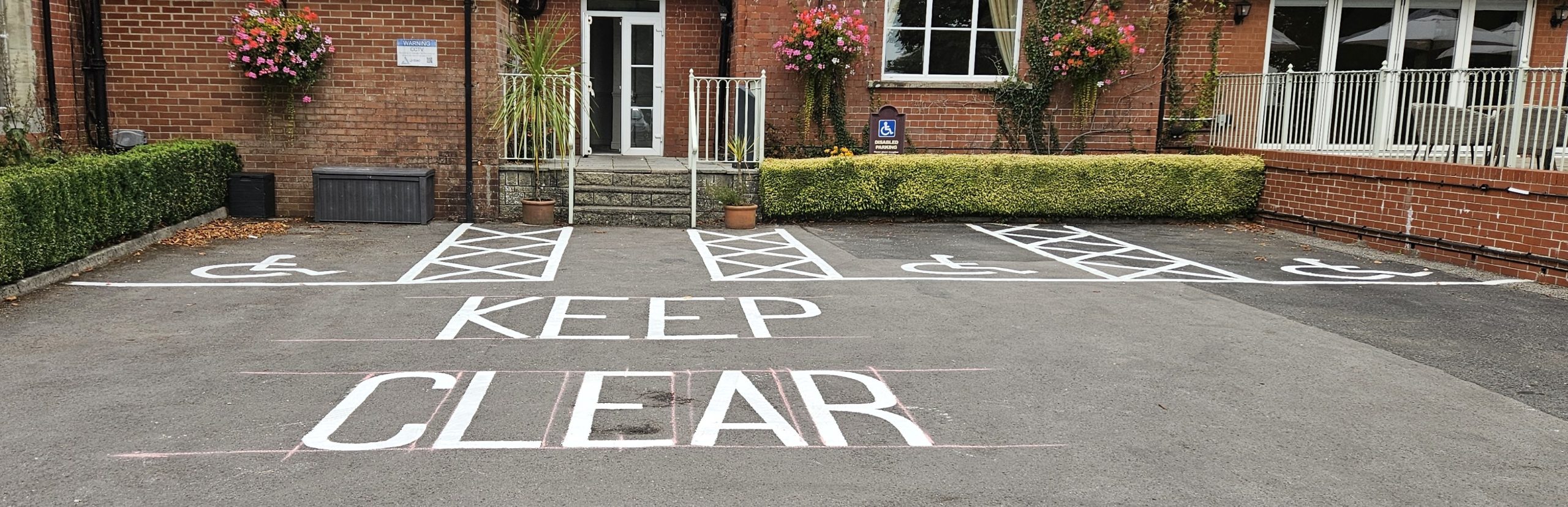 The disabled parking bays were our first priority. We meticulously remarked these spaces to ensure they meet all accessibility standards. Clear and visible disabled bay markings are crucial for a hotel, making it easy and safe for guests with mobility challenges to access the building. Using thermoplastic screed means these markings will remain bright and easily identifiable for years to come, providing consistent access for all of the hotel’s patrons.